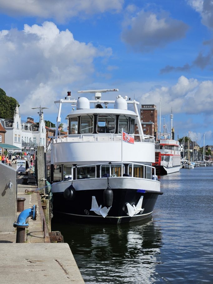 Nach der Ankunft startet um 12:40 Uhr die Führung an der Schumacher-Brücke. Im Anschluss bleibt euch noch etwa eine Stunde Zeit für eigene Entdeckungen – ob ein Spaziergang am Hafen, ein leckeres Fischbrötchen oder ein Eis mit Schleiblick.